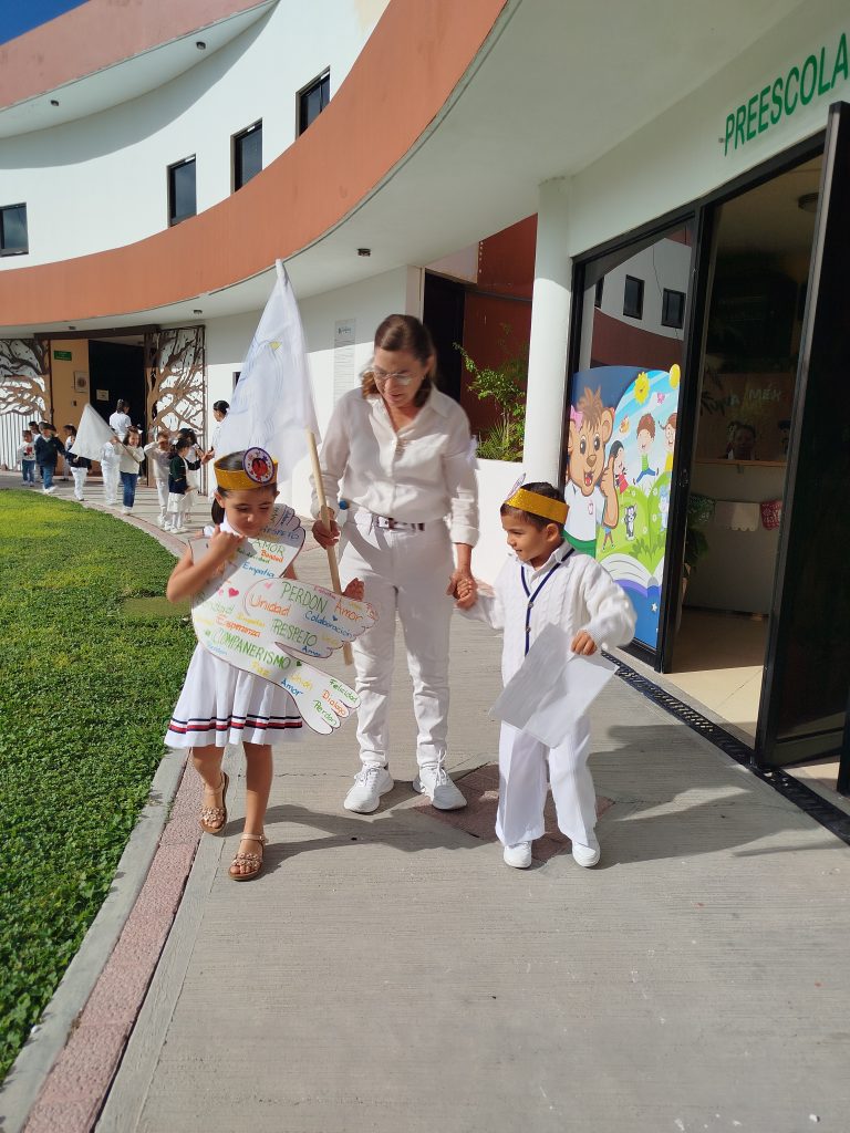 Vestidos de blanco y portando mensajes de amor, respeto y unión, los niños recordaron a toda la comunidad que la paz se construye cada día con pequeños gestos de bondad y empatía.
