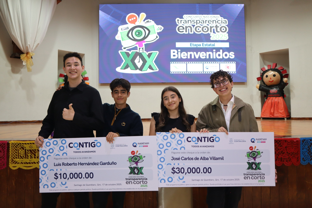 El día de hoy se llevó a cabo en nuestro colegio, la Premiación del Concurso Nacional “Transparencia en Corto 2025”, en donde nuestros talentosos alumnos Luis Roberto Hernández Garduño y José Carlos de Alba Villamil destacaron obteniendo el 3er y 1er lugar respectivamente. 🏆🎉