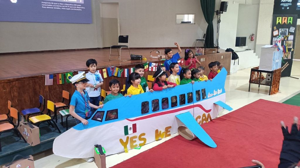 The young learners transformed into little flight attendants, ready to welcome their passengers with warmth and professionalism. Families walked through a fully set Check-In module, where children practiced greetings, polite expressions, and basic questions—all in English! Once boarding was complete, everyone stepped into an amazing airplane crafted with care and imagination, ready for takeoff.